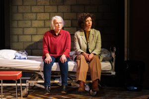 Das alles wird nicht chronologisch erzählt. Das Stück springt zwischen den Jahren und Erzählebenen hin und her und es gibt viele (von den Schauspielern im Übrigen souverän gemeisterte) Rollen – und Kostümwechsel. Man musste als Zuschauer schon gut aufpassen, um zu verstehen, in welcher Epoche man sich gerade befindet. Auf der Bühne wird Regine von drei verschiedenen Darstellerinnen verkörpert, die unterschiedliche Lebensphasen aufzeigen und oft direkt miteinander sprechen. Als Wolfgang erkrankt und schließlich stirbt, blickt Regine zurück auf ihr Leben. Schicht für Schicht trägt sie ihre vielen Erinnerungen ab und stellt sich die Frage: Was wäre möglich gewesen, wenn ich nicht in diesem Land, der DDR, gelebt hätte? Warum habe ich die Erziehung meiner Kinder von dem mitleidslosen Verhalten der eigenen Eltern beeinflussen lassen? Regine erkennt, dass sie sich oft angepasst und Chancen verpasst hat. Am Ende ihres Lebens mündet ihr schonungsloser Rückblick in einer durchwachsenen und melancholischen Bilanz.
